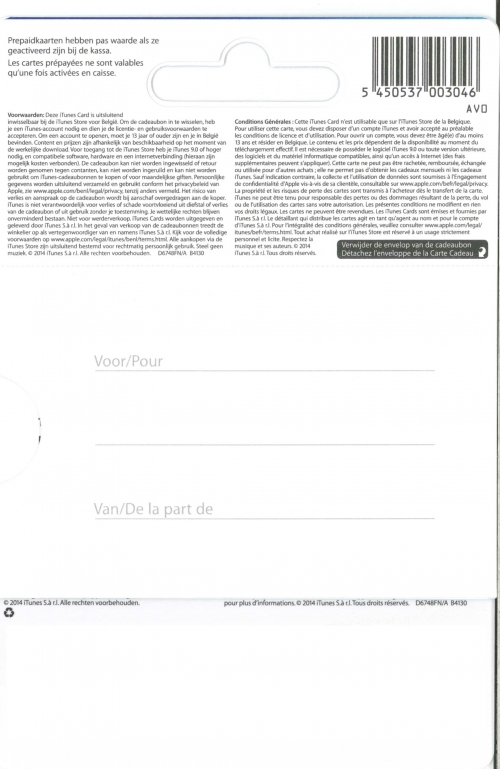 iTunes 15€ recharge 15€ pour iTunes Music Store ou AppStore