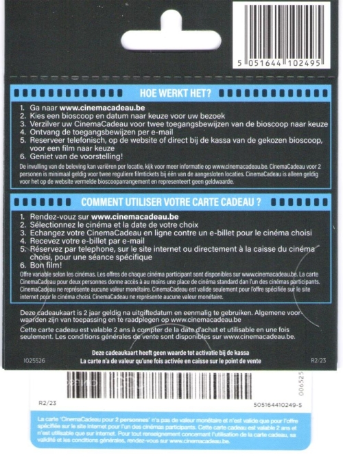 CinemaCadeau 2 personnes 25€ (One4All)