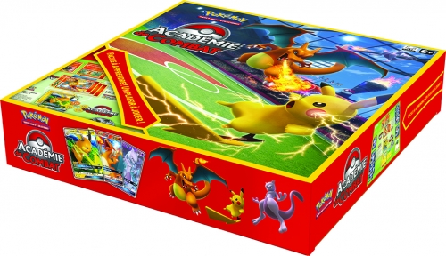 | REMARQUE | Prévu pour deux, Battle Academy propose les éléments suivants : Trois decks de 60 cartes, avec Pikachu, Charizard et Mewtwo (aucun rapport avec #metoo !) Un plateau de jeu Un guide didactique pour les débutants Un livre de règles pour les joueuses et joueurs avancés Des compteurs de dégâts et de statut |