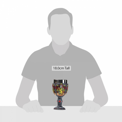 | REMARQUE | Donc, le Choixpeau Magique vous a placé dans la maison de Gryffondor ? Sachez que Gryffondor est la maison qui valorise le plus les vertus du courage, de la bravoure et de la détermination. Ce gobelet décoratif a les couleurs et les blasons de la maison Gryffondor. Fabriqué en résine avec un rebord en acier inoxydable. Pas un jouet ou un produit pour enfants. Destiné aux adultes seulement. |